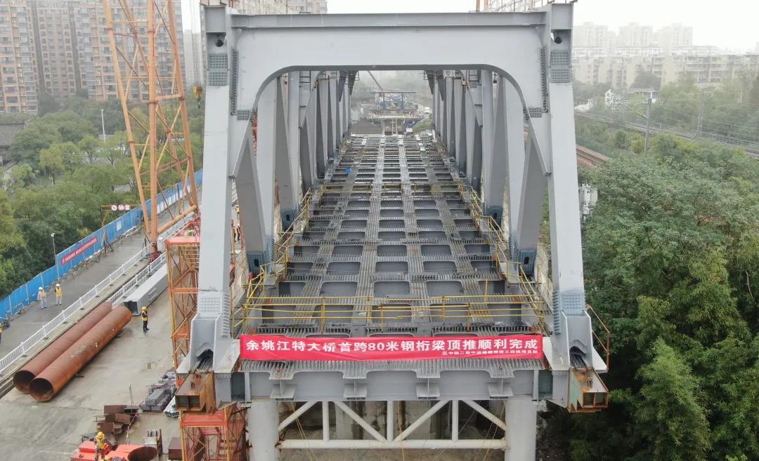 11月9日,随着重达约1100吨的钢桁梁缓缓就位,公司宁波枢纽增建三四线项目控制性工程余姚江特大桥首跨80米钢桁梁顺利顶推到位,掀起项目部“决战决胜四季度”劳动竞赛高潮。